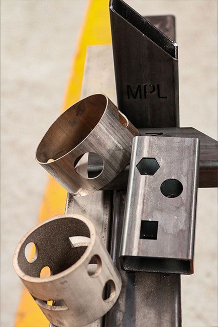 - Corte láser en PTR circular y cuadrado de hasta 8” y 6.00 metros de largo.